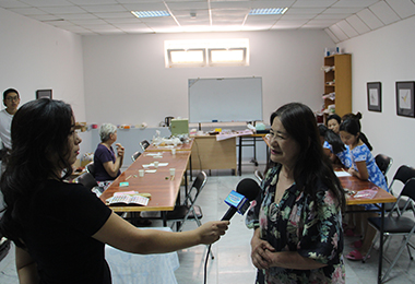 Wax painting instruction in Cambodia